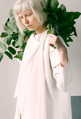 | Beige solid longline overcoat, has a spread collar, 2 pockets, zip closure, long sleeves, straight hem. |